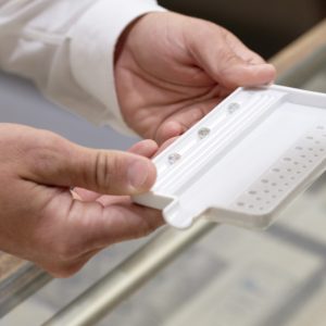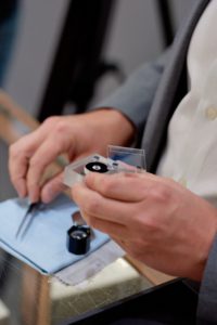 4. As we take diamonds out and as we put diamonds back into the case visually verify the diamond with a loupe and checking with the diamond viewer to ensure it is the right diamond.